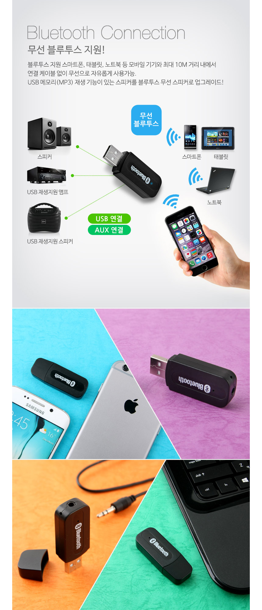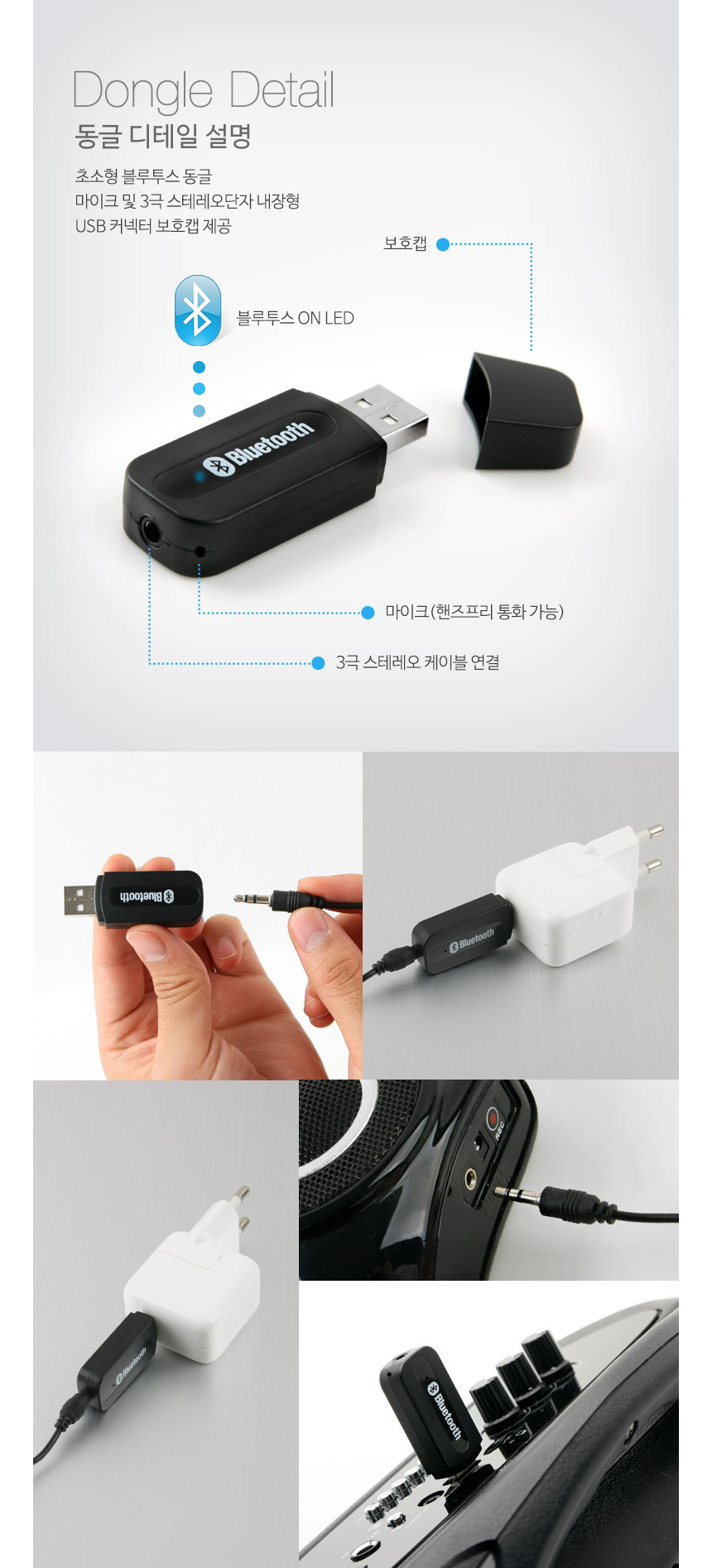 블루투스 기능이 없는 차량/이어폰/헤드셋/음향장비에 블루투스 수신할 수 있도록 하는 장비