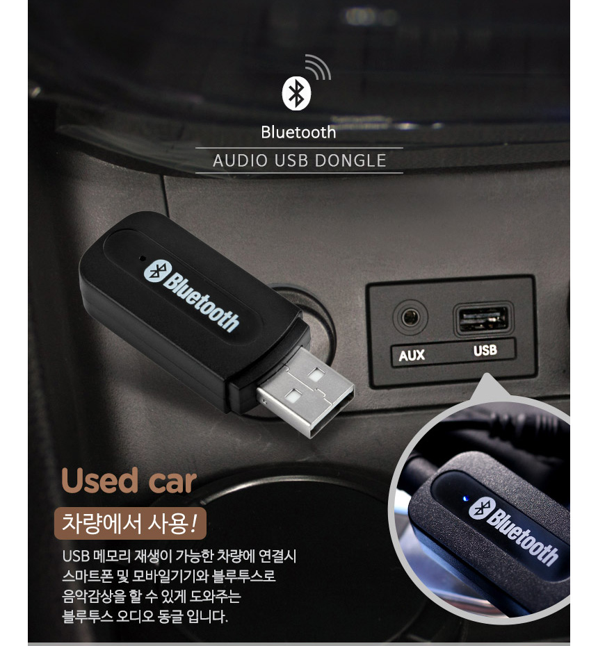 - HOME > 자동차용품 > 모바일/디지털 > 블루투스 송수신기(동글) > 차량용 자동차 블루투스 오디오 수신기 핸즈프리 무선 동글이 리시버 페어링 USB AUX