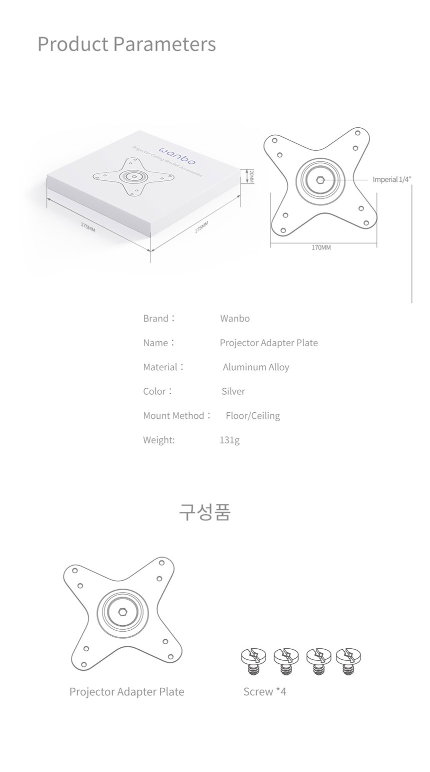 - HOME > 영상가전 > 프로젝터 악세사리 > 프로젝터 스탠드/브라켓 > 완보 천정 부착 아답터 플레이트 스탠드 거치대 받침대 브래킷 브라켓 Mozart1용