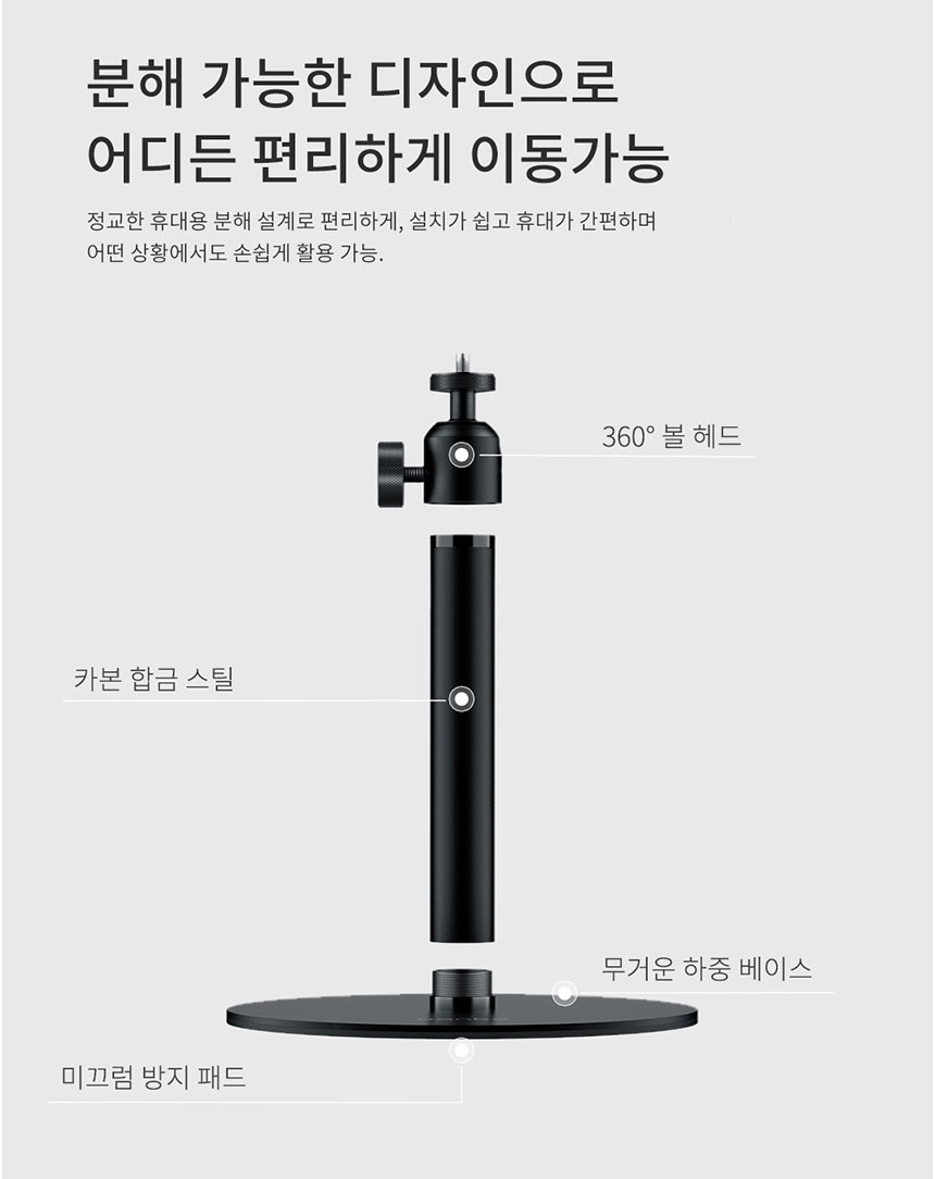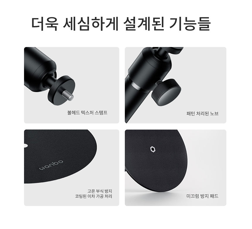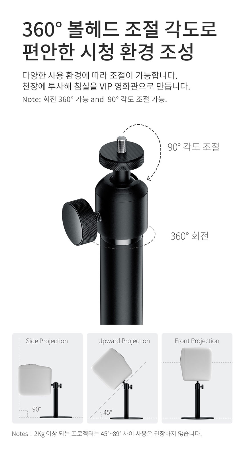 완보 빔 프로젝터 데스크 브래킷 탁상용 받침대 스탠드 거치대 주요 프로젝터 카메라 호환 사용 가능 360도 회전 볼 자유로운 각도조절 다양한 환경에 사용하기 편리 공간 활용도 우수 하판 무게 5kg 안정성 우수 미끄럼 방지 패드 카본 합금 강철 소재 - 오호! OHOI