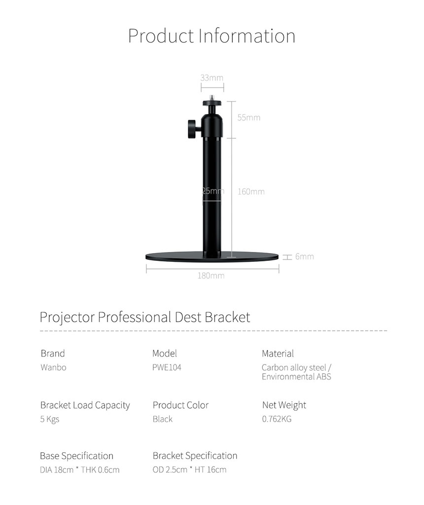 - HOME > 영상가전 > 프로젝터 악세사리 > 프로젝터 스탠드/브라켓 > 완보 탁상용 스탠드 거치대 받침대 데스크 브래킷 브라켓 360도 회전