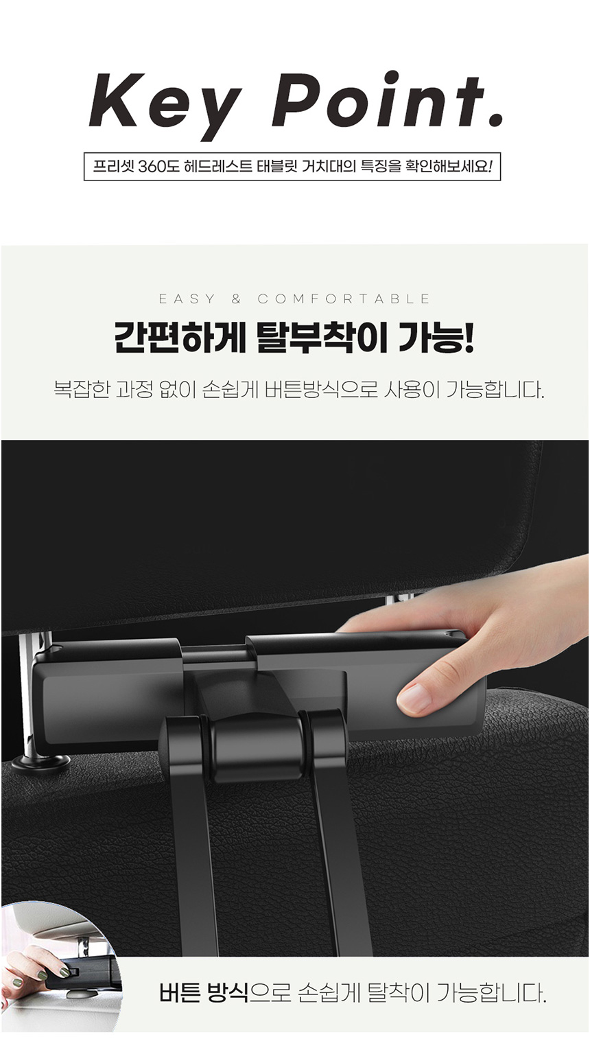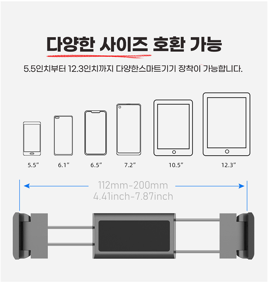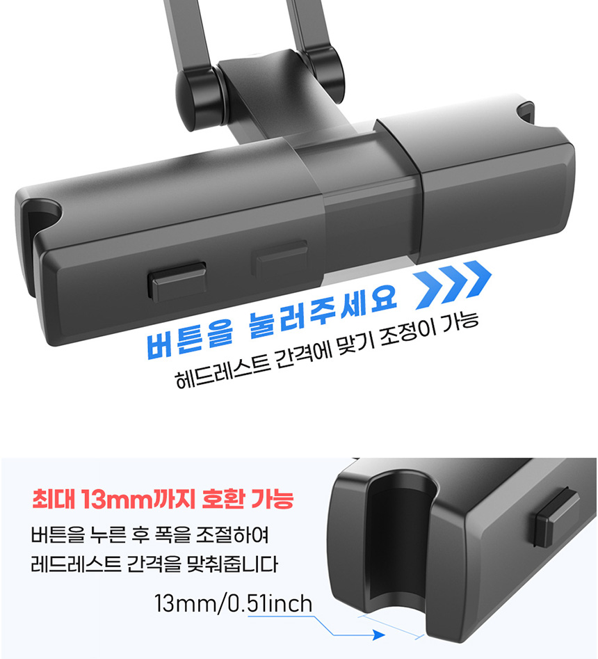 차량용 휴대폰 스마트폰 태블릿 거치대 받침대 헤드레스트 뒷자석 고정홀더 길이조절 가능 헤드레스트 홀더 130mm 165mm 스마트폰 고정 홀더 폭 최대 200mm 최소 112mm 거치가능 각도조절 360도 헤드회전 2단 각도 조절 간편 탈부착 접이식 고정홀더 거치대보관 용이 논슬립 패드 마감수려한 피니쉬 마감- 오호! OHOI