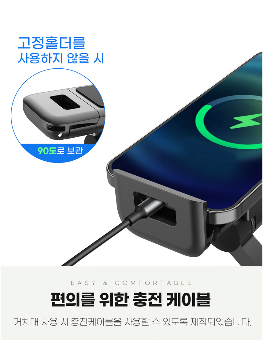 간편 탈부착 , 접이식 고정홀더 - 거치대보관 용이 , 논슬립 패드 마감