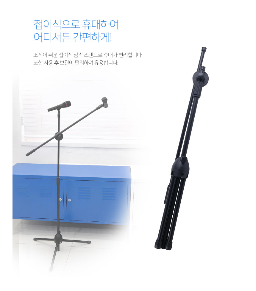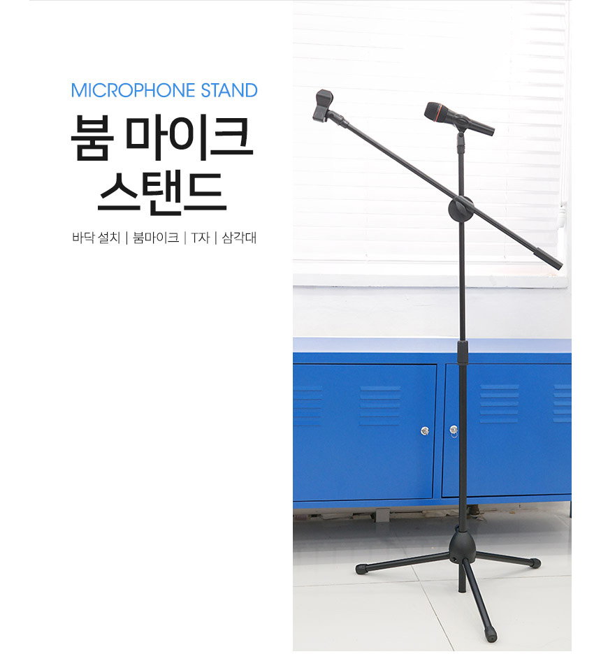마이크 스마트폰 높이조절 스탠드 바닥설치 붐마이크 T자 삼각대 2 in 1 T자형 스탠드 휴대폰거치대 다용도집게 높이조절 각도조절 접이식 삼각대 높이 73 ~ 130cm 마이크스탠드 길이 67cm 사용처 일반형 노래방 마이크 외 각종 마이크 일반형 마이크 외의 마이크는 홀더를 제거 교체해서 사용 마이크 별도구매 - 오호! OHOI