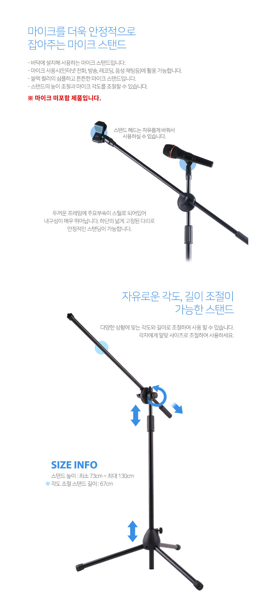 높이 : 73 ~ 130cm , 마이크스탠드 길이 : 67cm