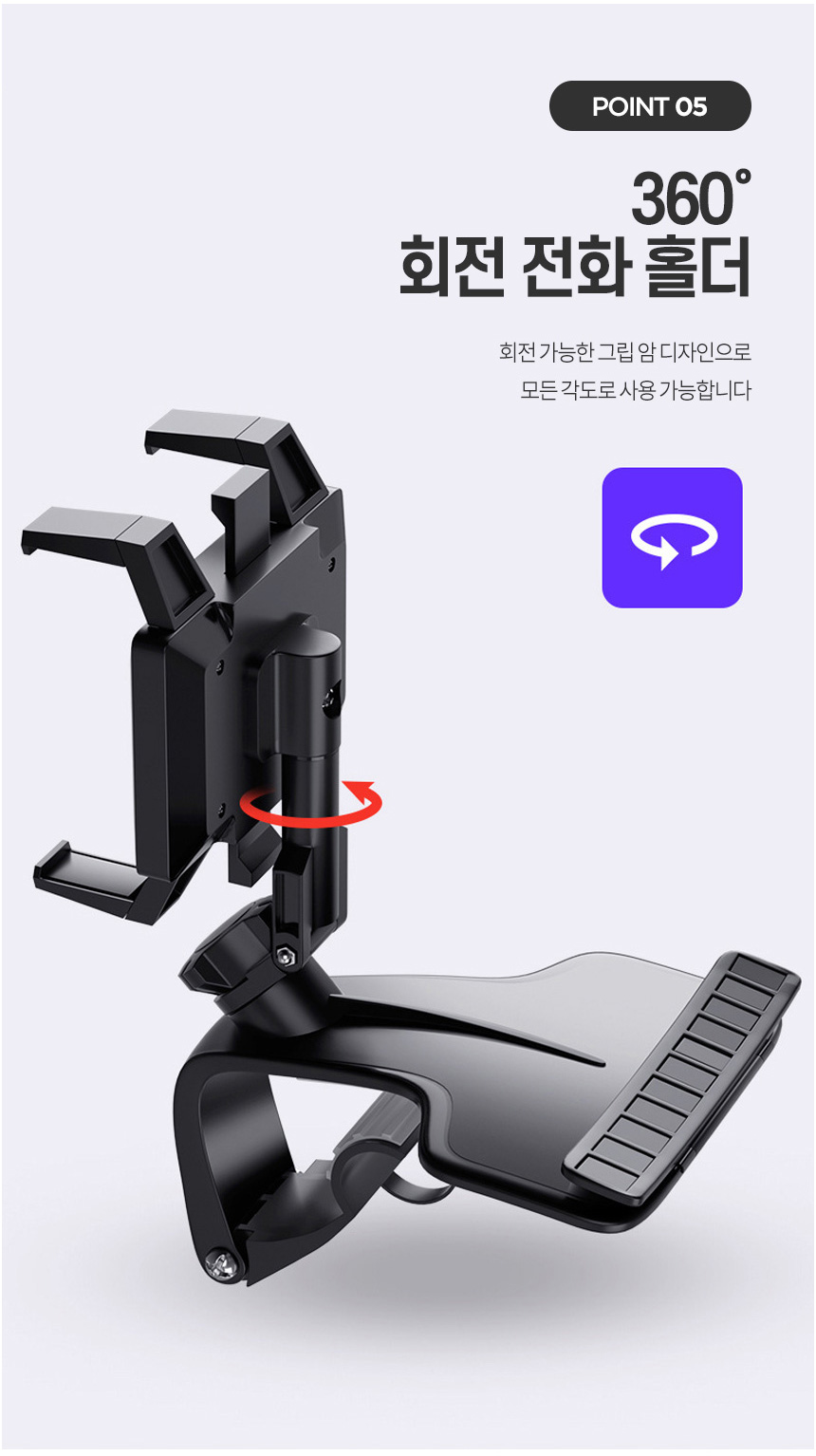 차량용 휴대폰 스마트폰 거치대 받침대 계기판 대쉬보드 클립형 스마트폰 고정 홀더 3인치 7인치 스마트폰 거치 튼튼한 스피링 클립 손가락 홀더 360도 볼헤드 각도조절 길이조절 다양한 기기 거치에 활용 수려한 피니쉬 마감 휴대폰 번호판 숫자판 고무패드 실리콘패드 대쉬보드 외 썬바이저 룸미러 등에 응용설치 가능한 모델 - 오호! OHOI