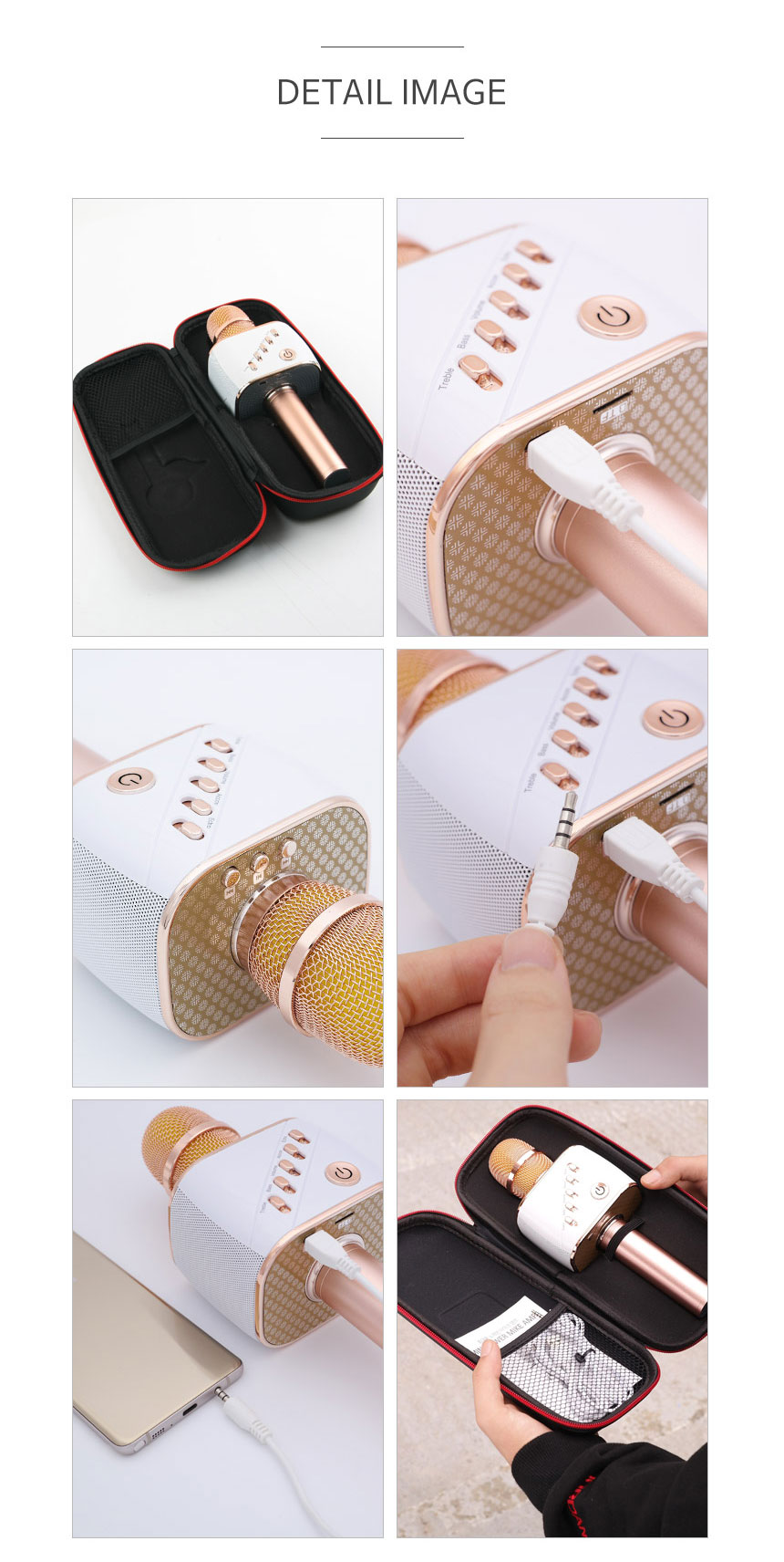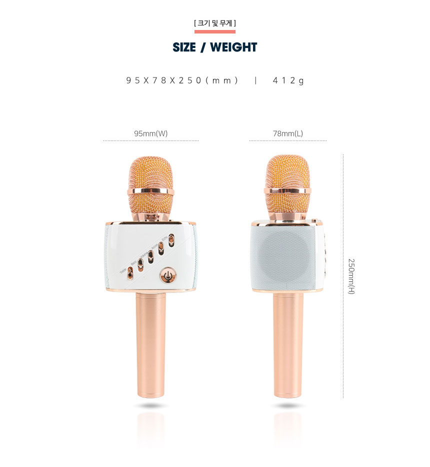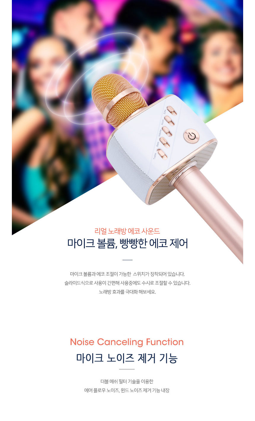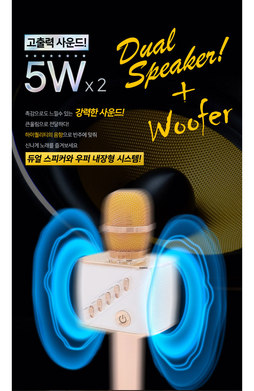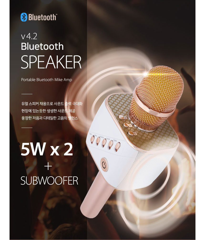 휴대용 블루투스 마이크 무선 앰프 스마트폰 미니 앰프 일체형 다이나믹 앰프 마이크 노래방 미니 확성기 홈파티 등에 활용 마이크 스피커 일체형 음악과 마이크 음성 동시출력 앰프 스피커 듀얼스피커 5W X 2 우퍼내장형 시스템 음원연결 블루투스 V4.2 무선연결 AUX 유선연결 TF메모리 최대32G 슬라이드식 볼륨 조절방식 마이크 반주곡 베이스 트러블 에코 조절 일시정지 이전 다음곡 기능 마이크 노이즈 제거 기능 내장 충전 전원 5V 1A 충전시간 2시간 이상 사용시간 약 3~4시간 마이크 전용 케이스 제공 구성 마이크 AUX 케이블 충전 케이블 전용 케이스 메뉴얼 - 오호! OHOI