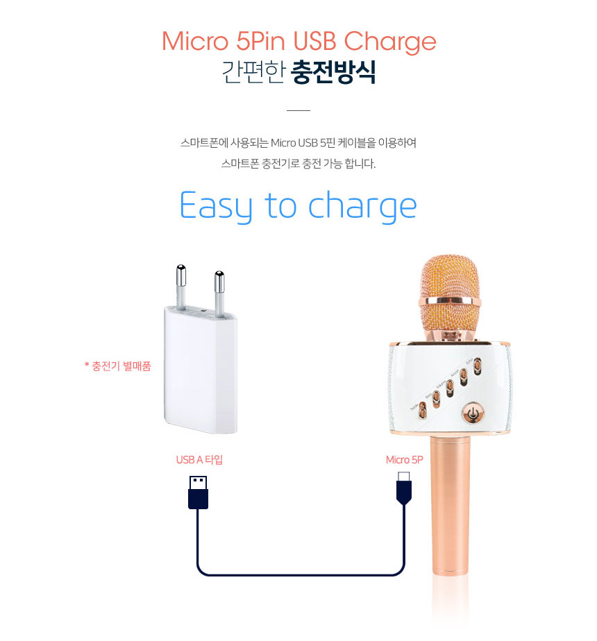 충전 : 전원 - 5V 1A , 충전시간 2시간 이상 - 사용시간 약 3~4시간