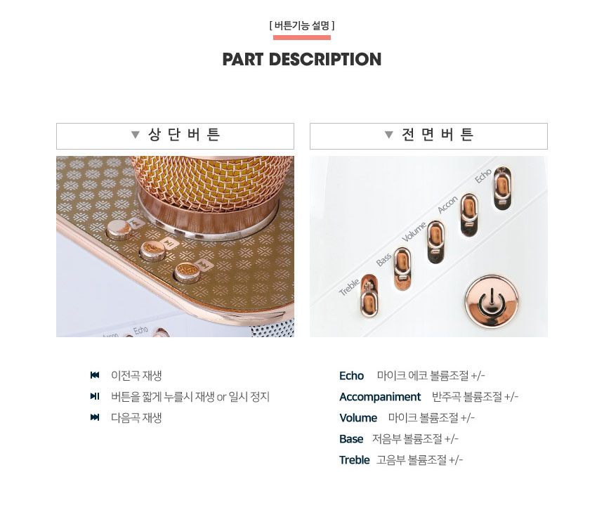 슬라이드식 볼륨 조절방식 - 마이크 , 반주곡 , 베이스, 트러블 , 에코 조절