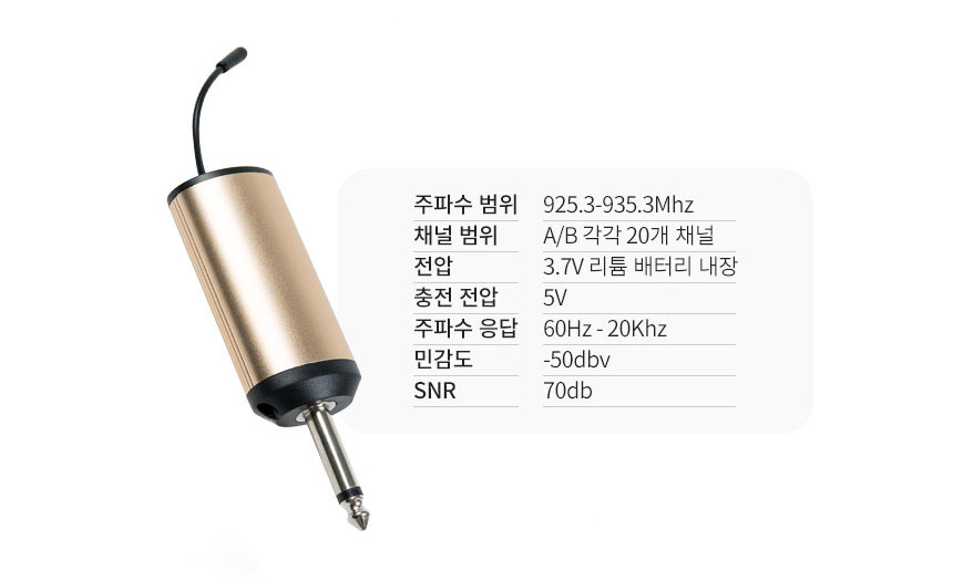 주파수 : 925 ~ 935 MHz - 채널 20개 , 무선마이크에서 선택가능