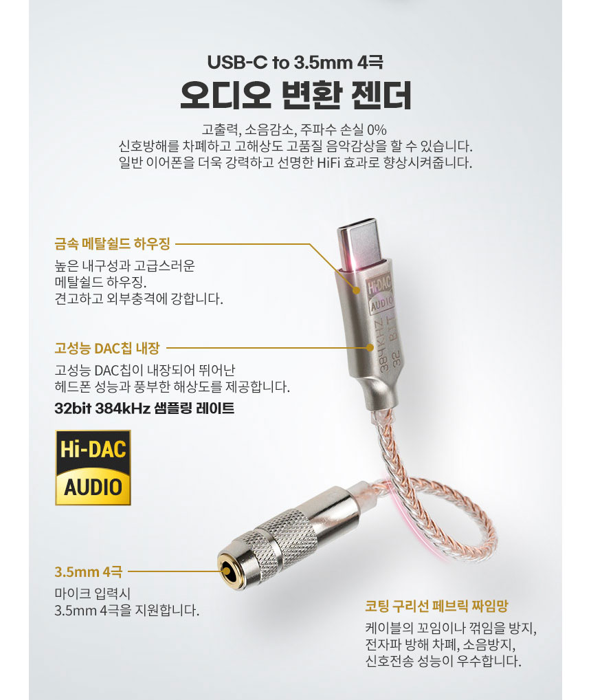 수신기 (리시버) 용 변환젠더 제공 - 6.3 to 3.5 (3극/4극) , 3.5 to C타입