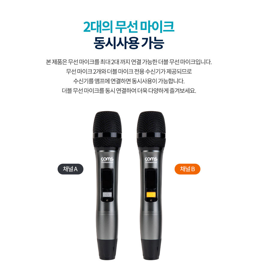 고감도 고음질 무선마이크 채널A 채널B 듀얼 더블 UHF 수신기 리시버 세트 학교 행사 강의 강의용 행사용 전시회 가이드 여행가이드 회의용 녹음 채팅 채팅용 컴퓨터PC 스튜디오 싱글 마이크 녹음용 방송용 충전식 앰프 스피커 의 마이크 입력단자에 수신기를 설치하여 무선마이크 사용 노트북 PC 휴대폰 등에 수신기를 설치하여 무선마이크 사용 주파수 925 ~ 935 MHz 채널 20개 무선마이크에서 선택가능 마이크 볼륨조절 수신기용 변환젠더 제공 6.3 to 3.5 3극/4극 3.5 to C타입 전원 무선마이크 AA 배터리 2개 포함 수신기 충전식 구성 무선마이크 X2 수신기 리시버 수신기 충전 케이블 변환젠더 2종 AA 배터리 설명서 - 오호! OHOI