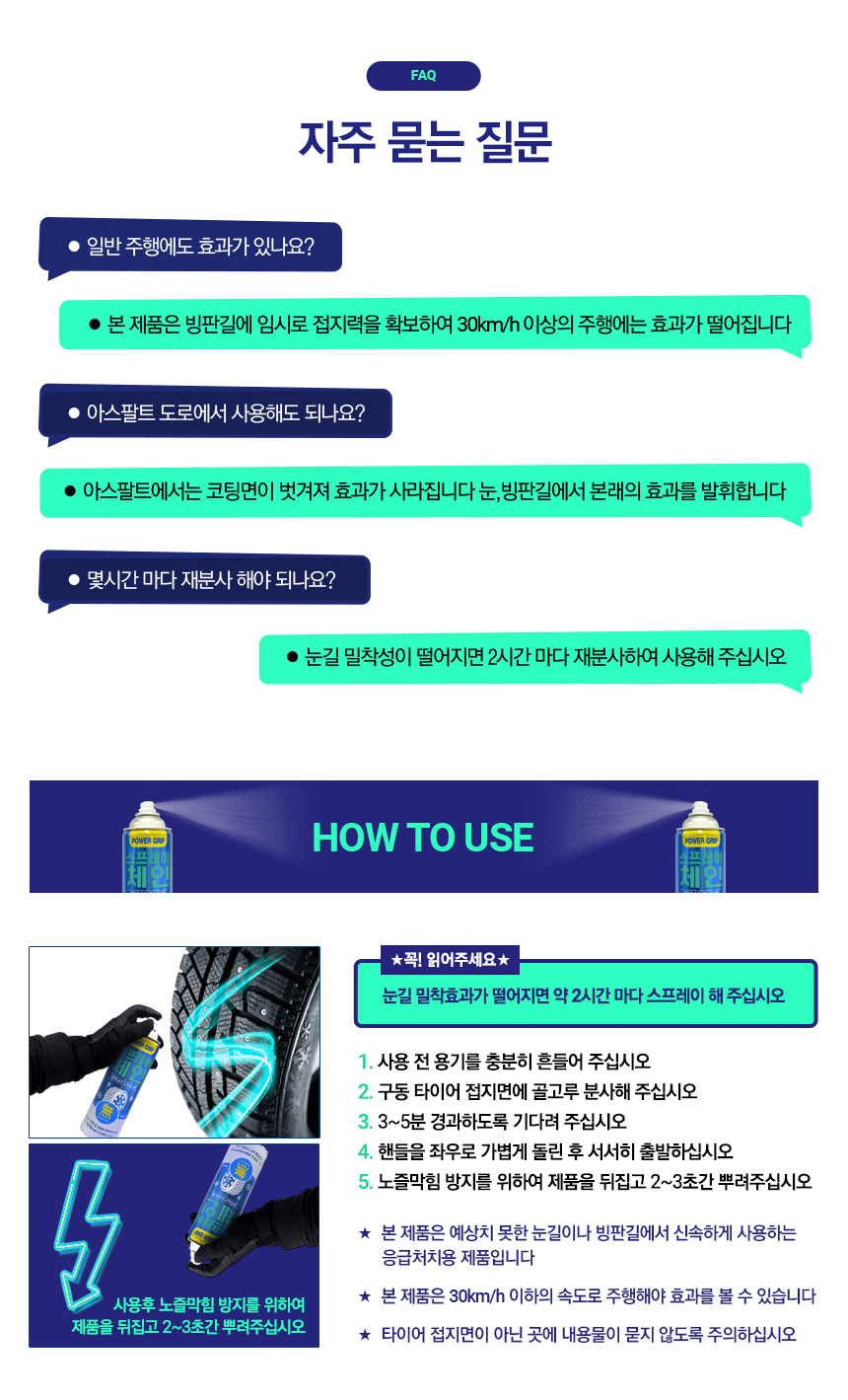 ※ 효과 지속시간은 약 2시간 (눈길 주행시간) 입니다. - 2시간마다 재분사