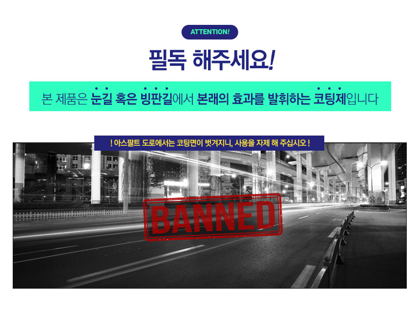 ※ 눈길이 아닌 일반 아스팔트 도로를 주행하면 코팅면이 벗겨져 효과가 사라집니다.