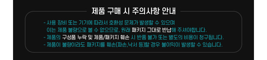불량, 오배송 등 판매자 귀책 반품/교환 : 상품 수령 후 7일이내 (판매자 반품배송비 부담)
