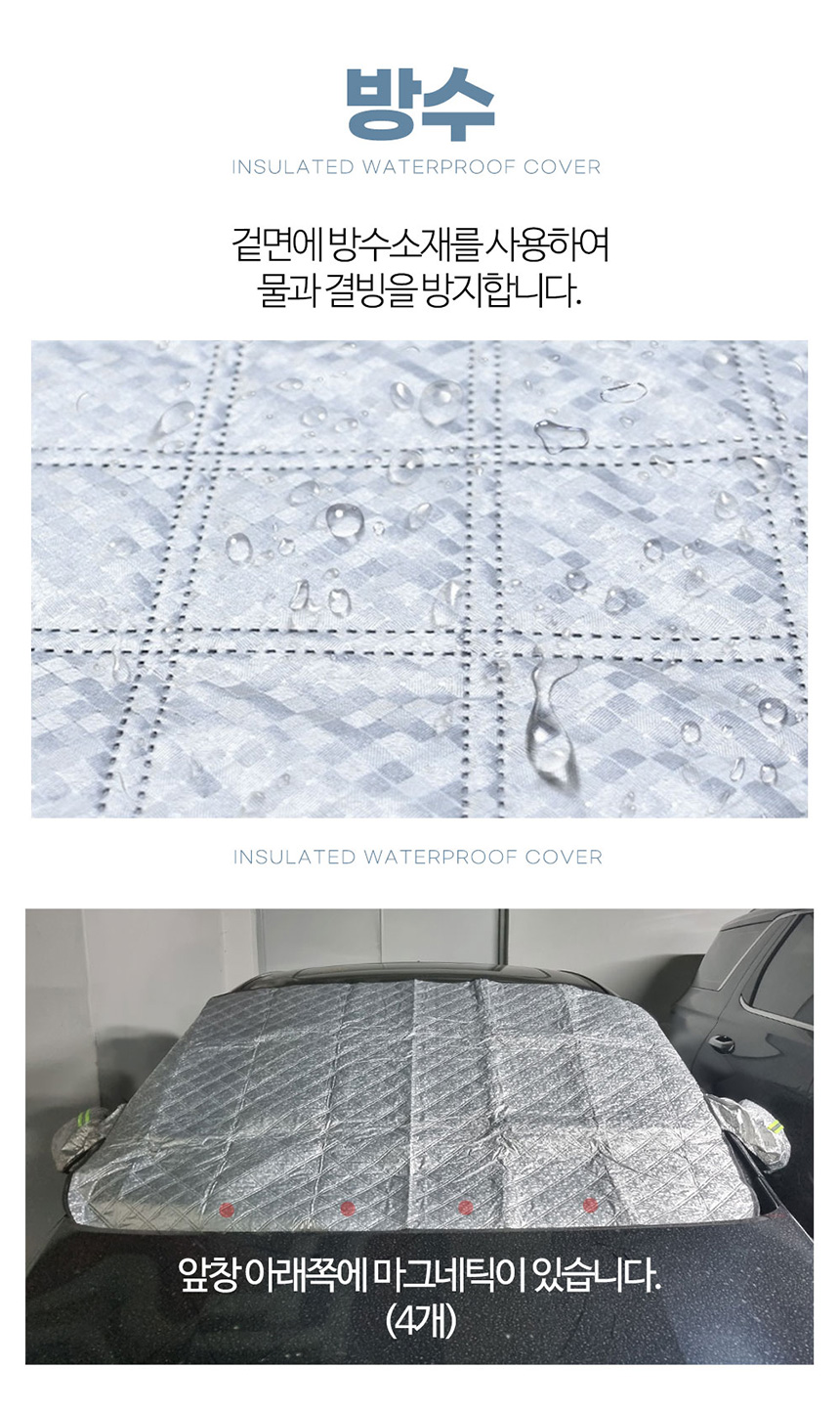 - HOME > 자동차용품 > 편의용품 > 성애제거-커버/헤라/제거제 > 차량용 SUV 성에방지커커버 자동차 앞유리 커버 운전석 단열 방수 마그네틱 자석 차박