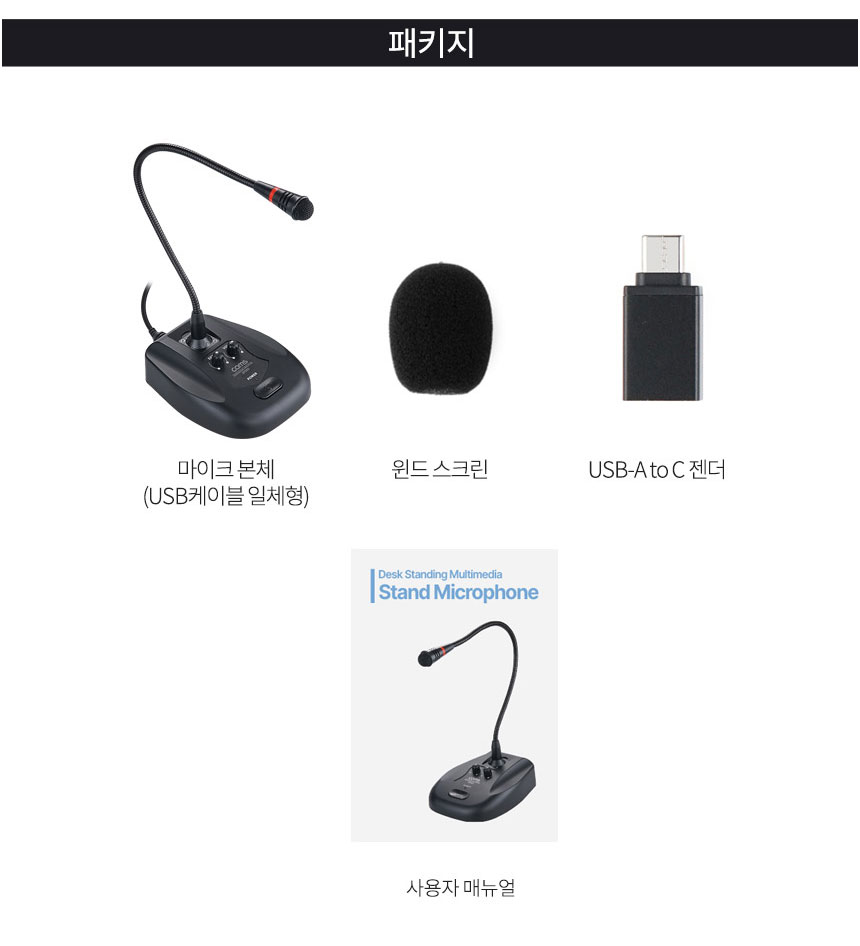 구성 : 마이크-스탠드, 방풍솜 , C 타입 젠더 , 사용자 메뉴얼