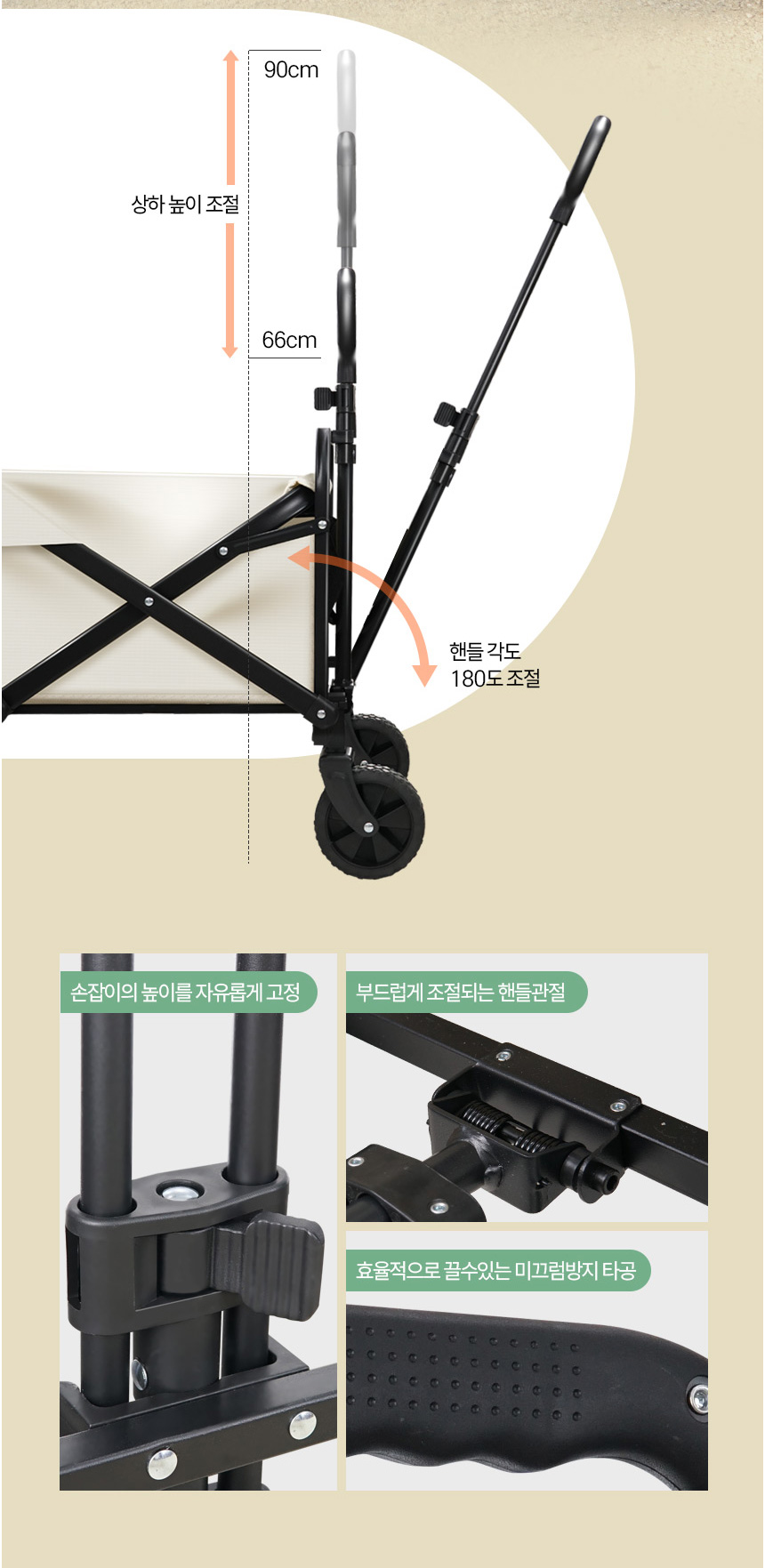 손잡이 길이조절 : 65- 90 cm 이내 자유조절