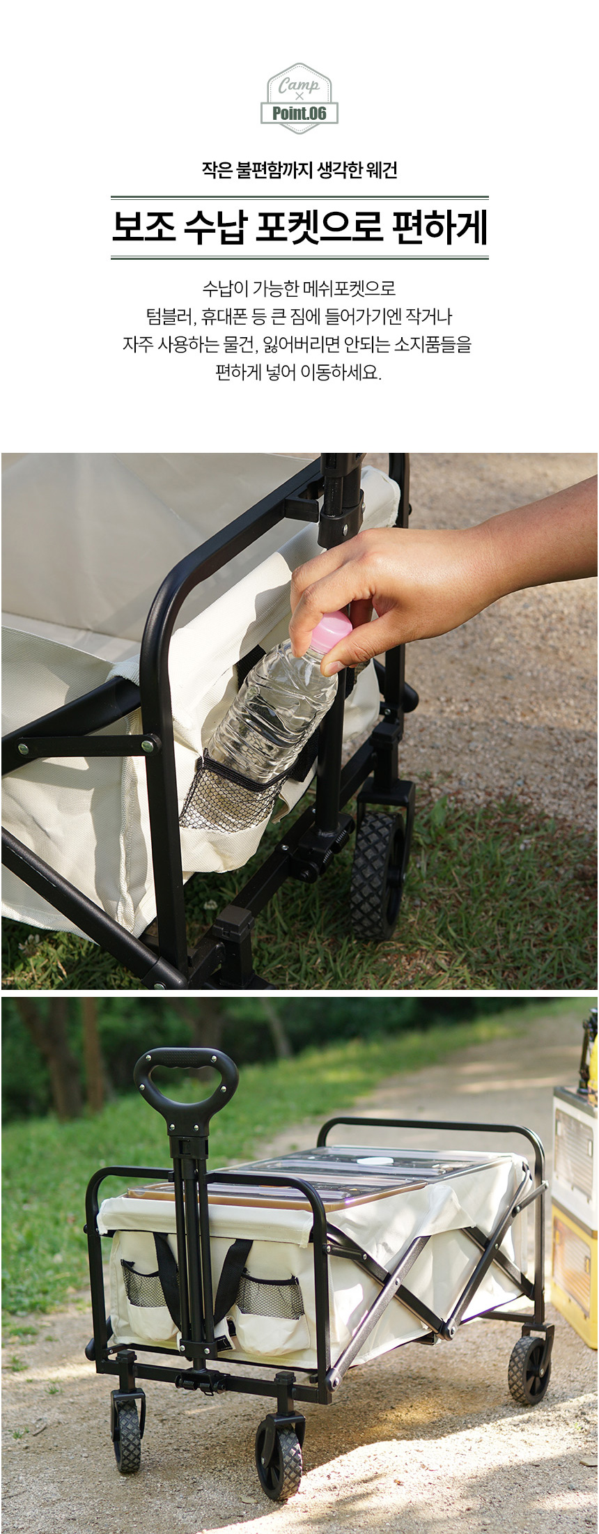 보조 수납 포켓 ○ , 접이식 보관 - 휴대 용이