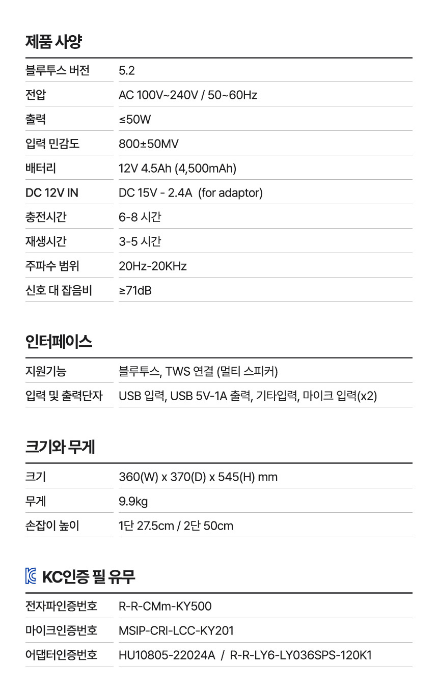 - KC 인증정보: 상품상세참조