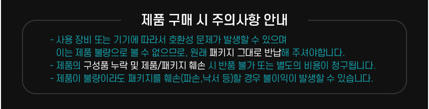 초기불량이라도 포장 BOX 및 부수기재물이 파손/훼손되면 불이익이 발생할 수 있습니다.