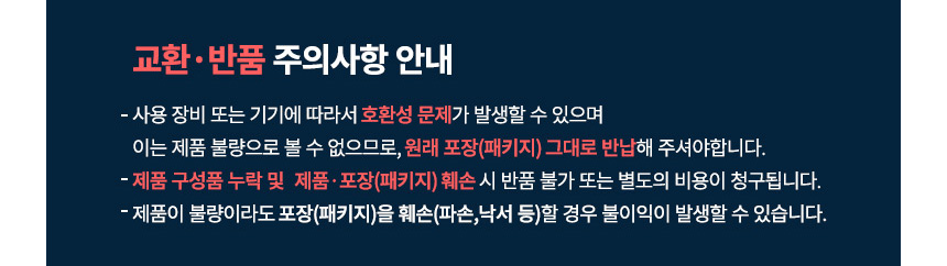 불량, 오배송 등 판매자 귀책 반품/교환 : 상품 수령 후 7일이내 (판매자 반품배송비 부담)