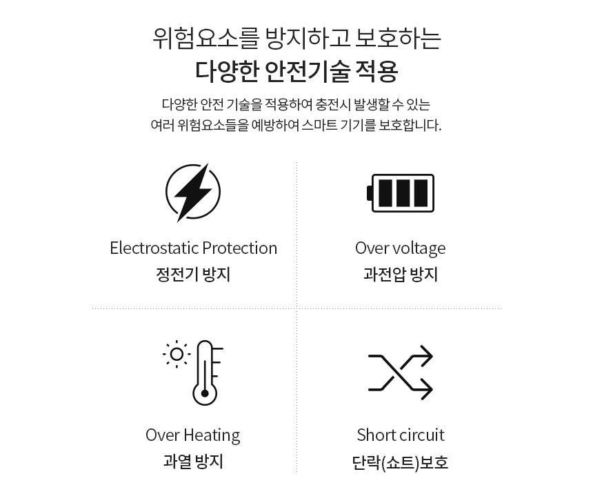 다중보호회로 - 과전류보호 , 과전압보호 , 발열보호 , 과출력보호 , 과충전보호