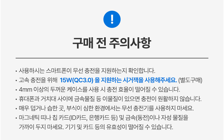 국제표준 qi 인증 무선충전 시스템 - 15W 고속충전