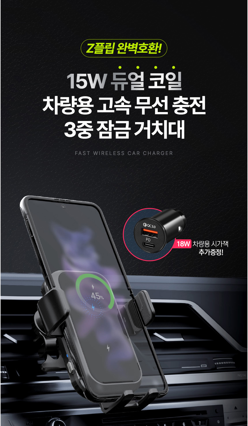 차량용 휴대폰 스마트폰 거치대 받침대 대쉬보드 유리 흡착식 원터치 고정 젤패드 송풍구형 거치 스마트폰 고정FOD센서 스마트폰만 자동인식 자동거치 예비 전력 시스템 시동 OFF에도 탈착가능 약3회 360도 볼헤드 각도조절 길이조절 다양한 기기 거치에 활용 수려한 피니쉬 마감 국제표준 qi 인증 무선충전 시스템 15W 고속충전 듀얼 코일 무선충전 Z플립 스마트폰을 접어도 충전 가능 18W 고속 시거잭 충전기 증정 구성 무선충전패드 송풍구거치대 흡착형거치대 C타입USB케이블 사용자 설명서 - 오호! OHOI