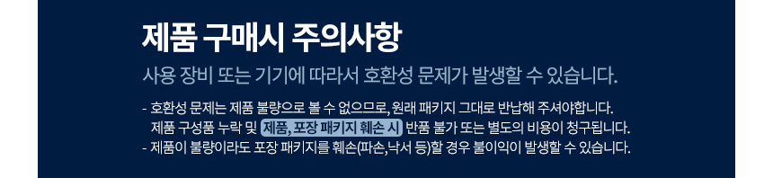 불량, 오배송 등 판매자 귀책 반품/교환 : 상품 수령 후 7일이내 (판매자 반품배송비 부담)