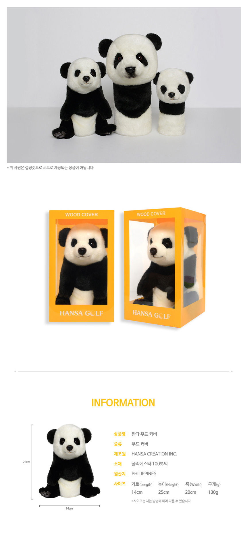 골프 우드 커버 골프채 헤드커버 클럽 덮개 카바 헤드카바 실제 동물과 동일하게 제작한 실사 인형 클럽 커버 핸드메이드 극강의 퀄리티 착용감 보호력 안정성을 제공하는 명품 클럽커버 소재 폴리에스터 100% 외 사이즈 가로 높이 폭 14 x 25 x 20 cm 무게 130g 판다 - 오호! OHOI