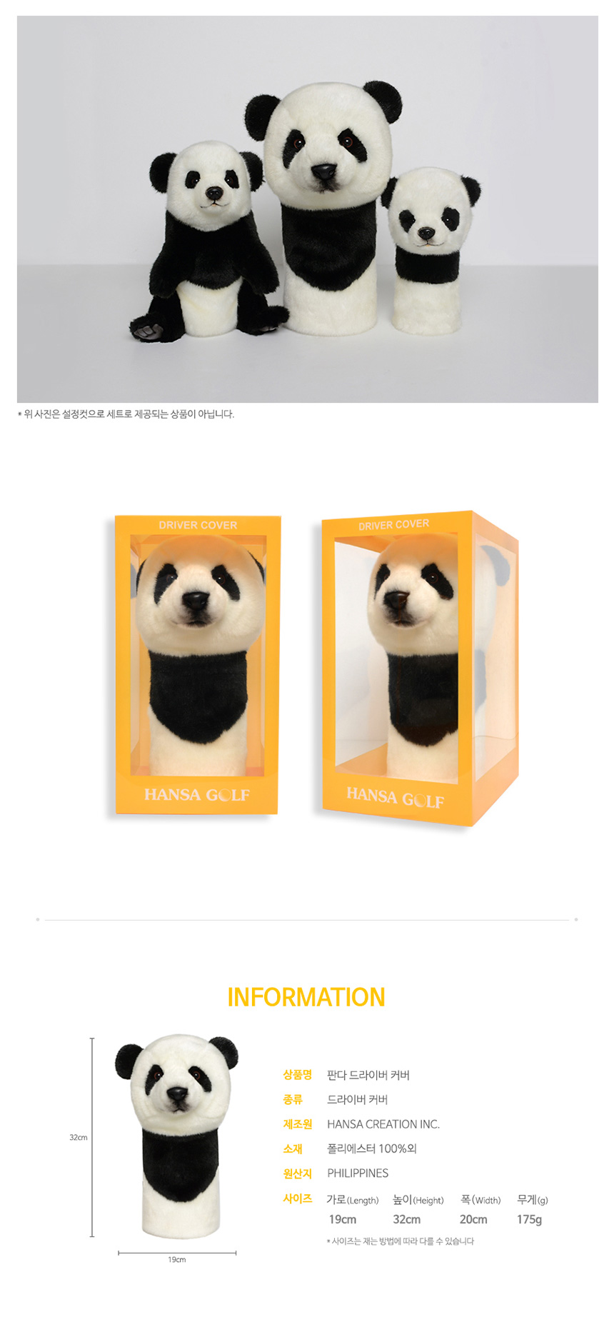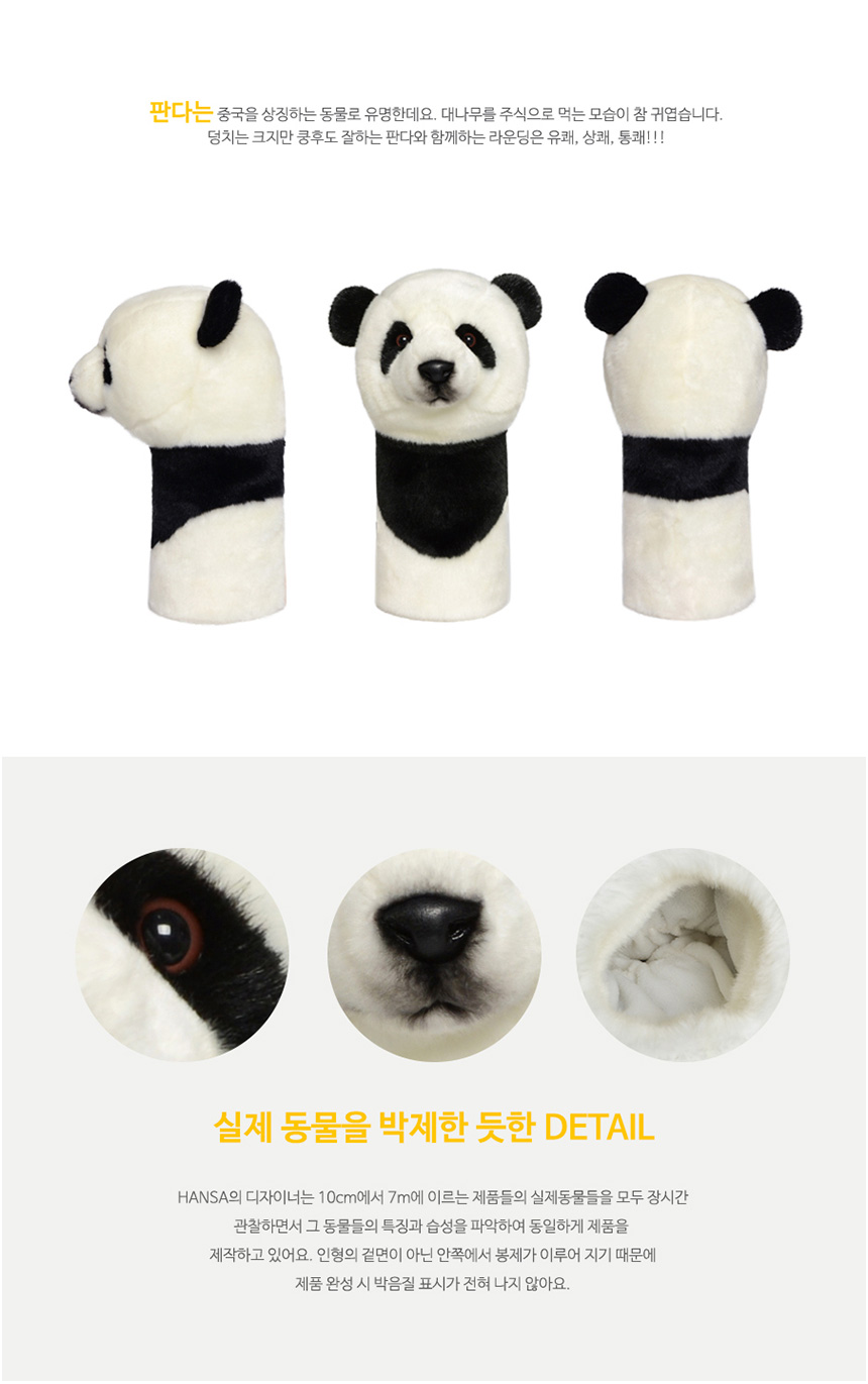 골프 드라이버 커버 골프채 헤드커버 클럽 덮개 카바 헤드카바 실제 동물과 동일하게 제작한 실사 인형 클럽 커버 핸드메이드 극강의 퀄리티 착용감 보호력 안정성을 제공하는 명품 클럽커버 소재 폴리에스터 100% 외 사이즈 가로 높이 폭 19 x 32 x 20 cm 무게 175g 판다 - 오호! OHOI