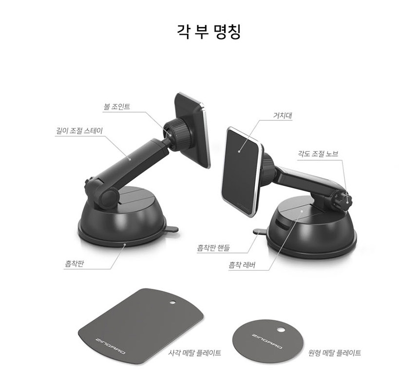 차량용 휴대폰 스마트폰 거치대 받침대 대쉬보드 흡착식 원터치 고정 젤패드 스마트폰 자석 고정 논슬립 실리콘 패드 보조철판 2종 360도 볼헤드 각도조절 길이조절 +15mm 다양한 기기 거치에 활용 수려한 피니쉬 마감- 오호! OHOI