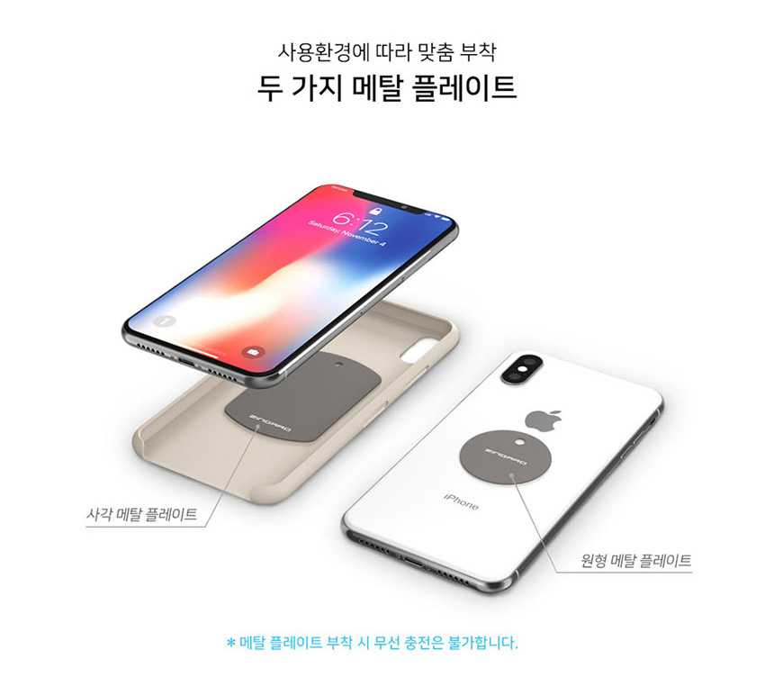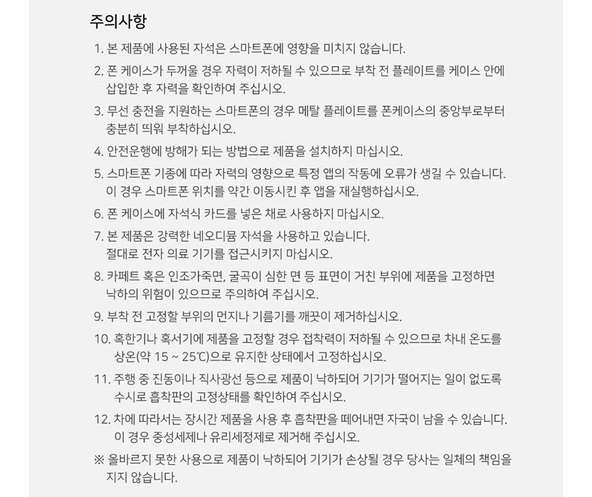 보조철판 부착전 , 휴대폰 케이스에 넣은 상태로 자석거치가 잘되는지 꼭 확인 바랍니다.