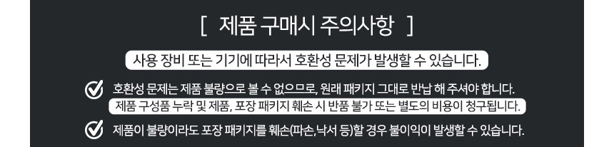 불량, 오배송 등 판매자 귀책 반품/교환 : 상품 수령 후 7일이내 (판매자 반품배송비 부담)