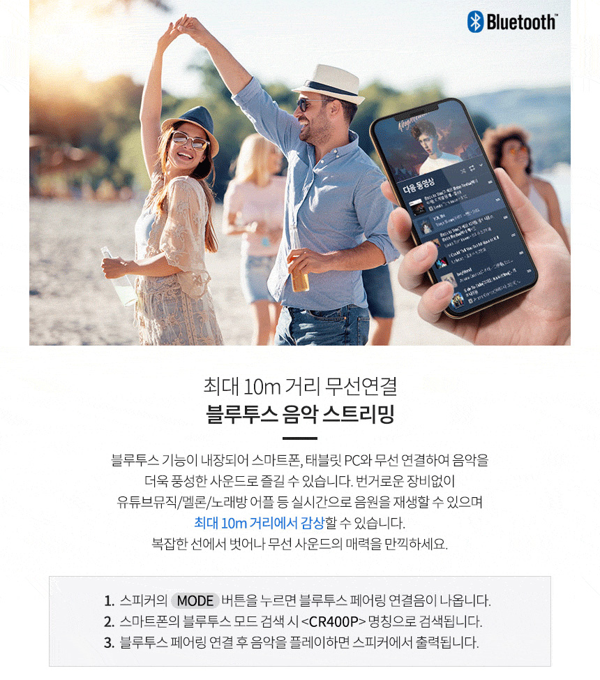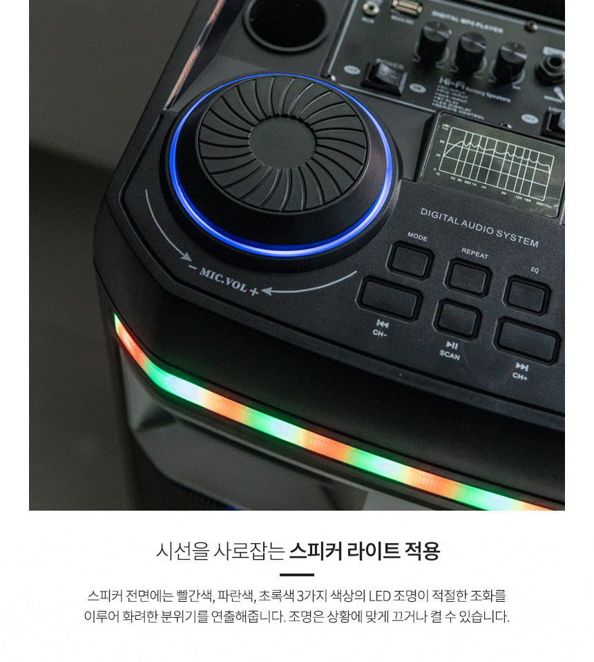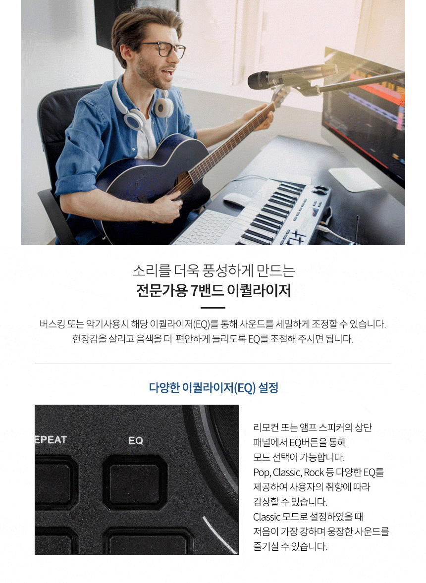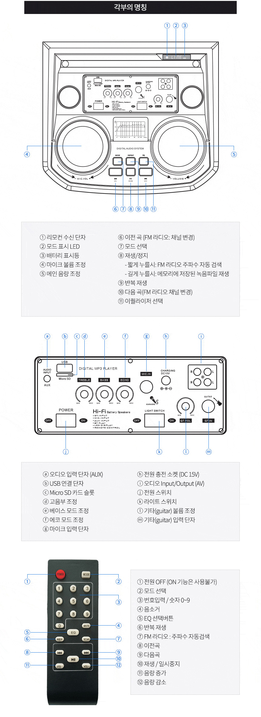 블루투스, 볼륨 - 베이스 - 에코 - 트레블 조절가능, EQ모드