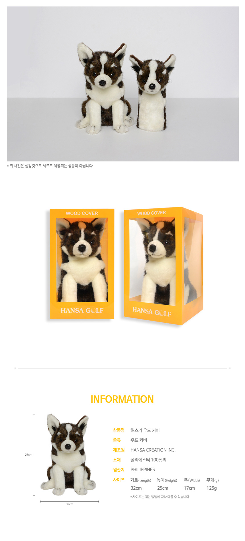 골프 우드 커버 골프채 헤드커버 클럽 덮개 카바 헤드카바 실제 동물과 동일하게 제작한 실사 인형 클럽 커버 핸드메이드 극강의 퀄리티 착용감 보호력 안정성을 제공하는 명품 클럽커버 소재 폴리에스터 100% 외 사이즈 가로 높이 폭 32 x 25 x 17 cm 무게 125g 허스키 - 오호! OHOI