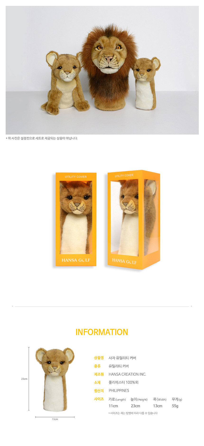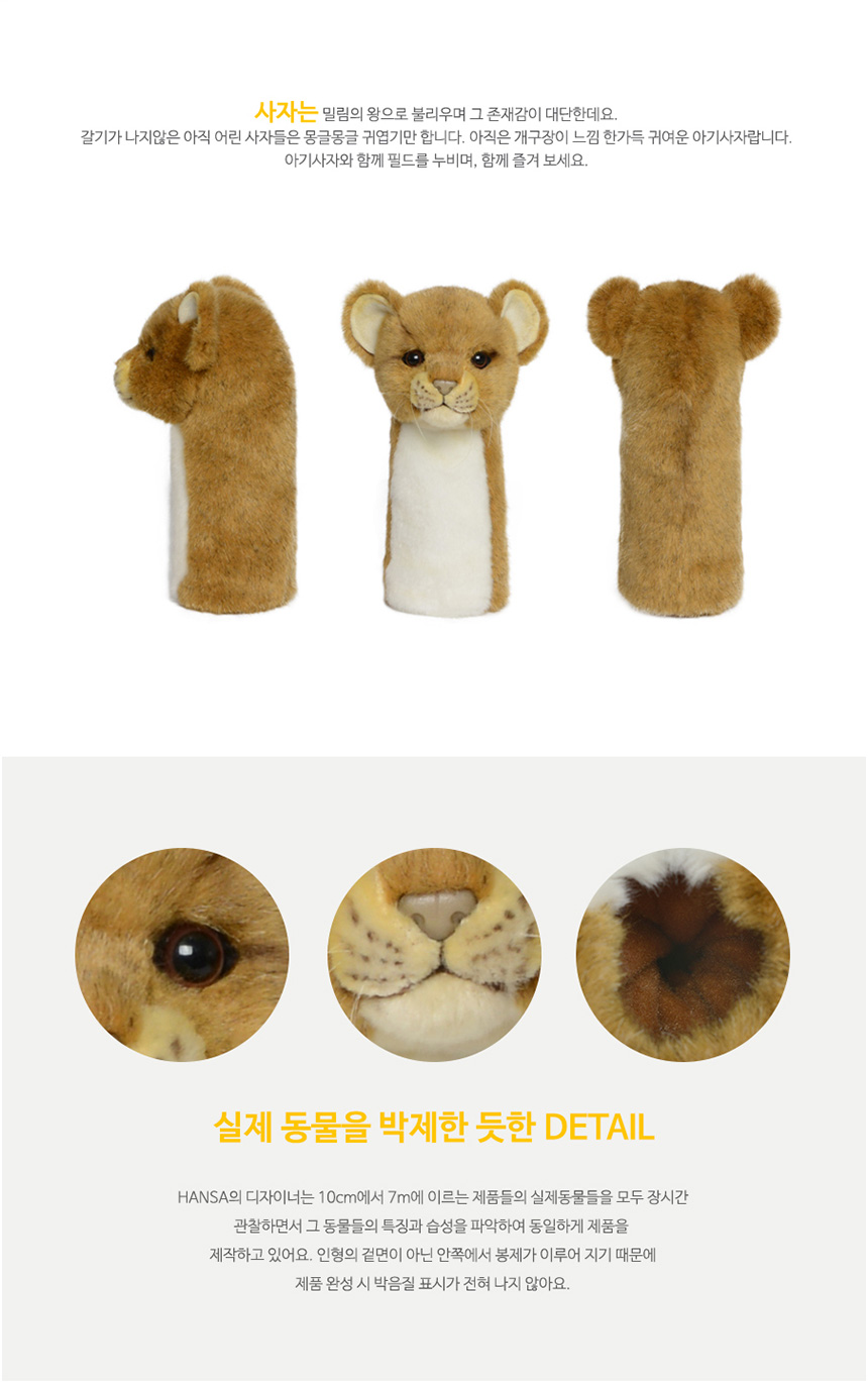골프 유틸리티 유틸 커버 골프채 헤드커버 클럽 덮개 카바 헤드카바 실제 동물과 동일하게 제작한 실사 인형 클럽 커버 핸드메이드 극강의 퀄리티 착용감 보호력 안정성을 제공하는 명품 클럽커버 소재 폴리에스터 100% 외 사이즈 가로 높이 폭 11 x 23 x 13 cm 무게 55g 사자 - 오호! OHOI