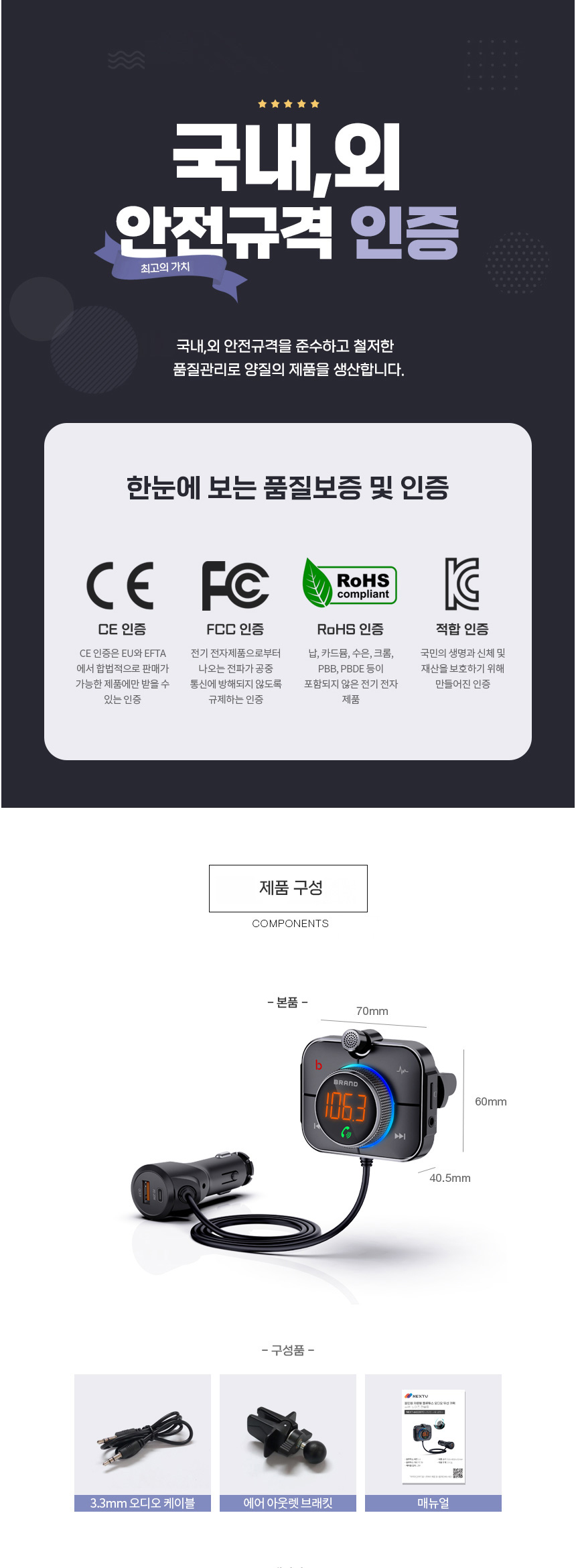 구성 : 본품 , 3.5mm 오디오 케이블 , 에어 아웃렛 브래킷, 사용설명서