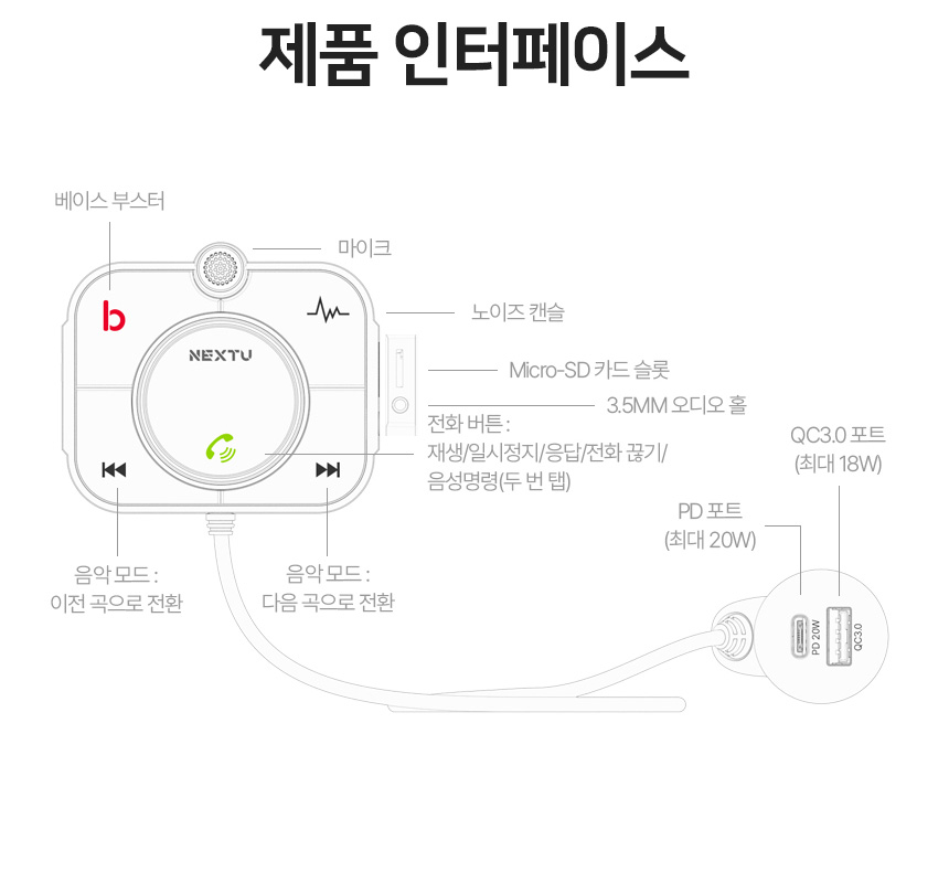 차량용 USB 멀티소켓 연장 소켓 USB 2구 시가잭 시거잭 소켓 급속 고속 12V 24V 승용차 화물차 겸용 퀄컴 퀵차저 Qualcomm Quick charge Q.C. 3.0 1포트 PD 1포트 출력 USB A QC3.0 출력 18W USB C 출력 20W 분배기 스마트폰 휴대폰 블루투스 무선연결 카오디오 주파수 연결 87.5MHz 108.0MHz MP3 플레이어 핸즈프리 Micro-SD TF 메모리 3.5mm 오디오 단자 직관적인 조작버튼 전화버튼 이전곡 다음곡 180도 회전마이크 마이크 노이즈 캔슬링 베이스 부스터 블루수트 V5.0 무선연결 거리 7m - 오호! OHOI