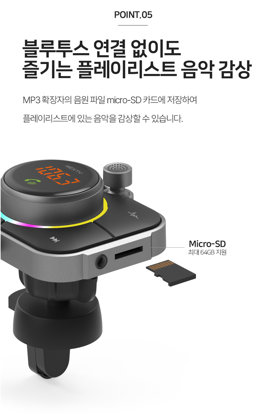 USB A 1포트- USB C 1포트 - 블루투스 MP3 플레이어 - 핸즈프리