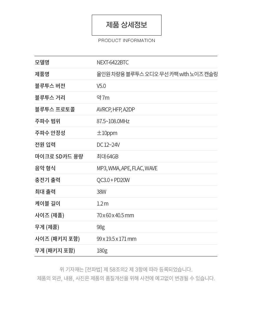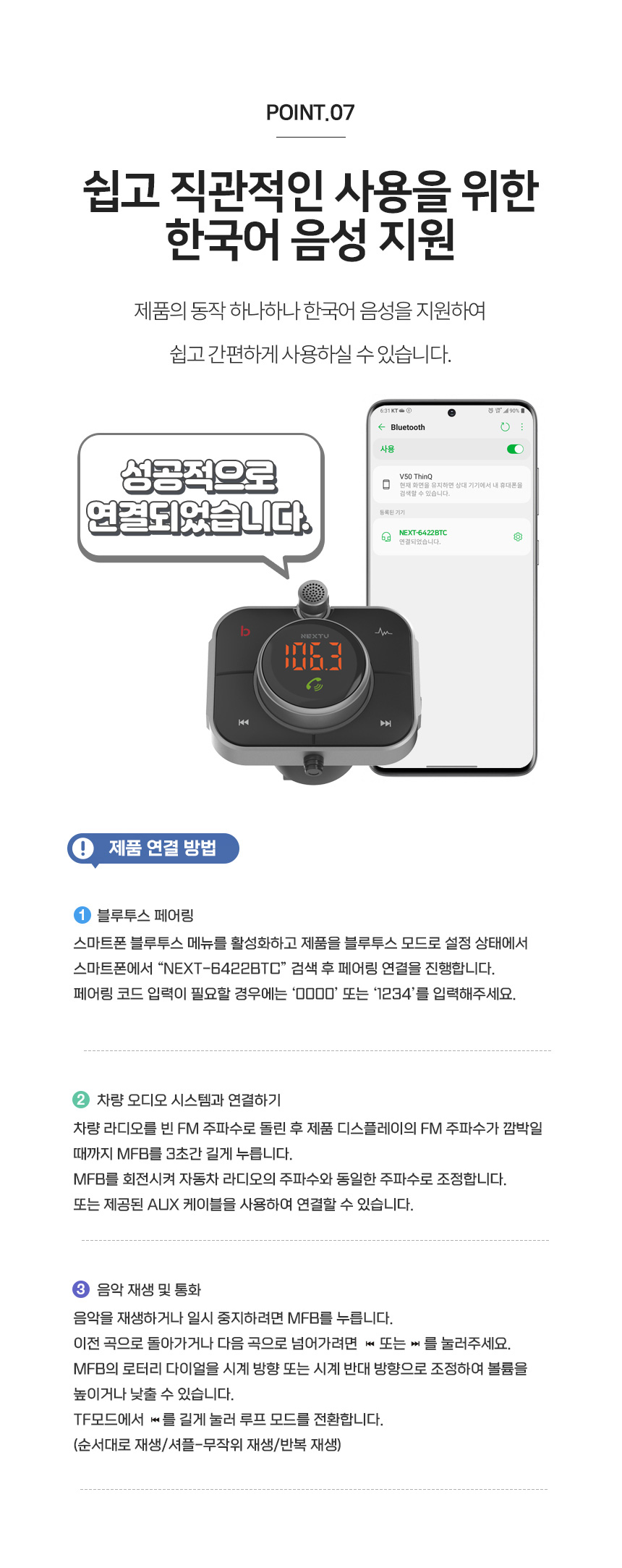 스마트폰 무선연결 : 블루투스 V 5.0 - 거리 약 7m
