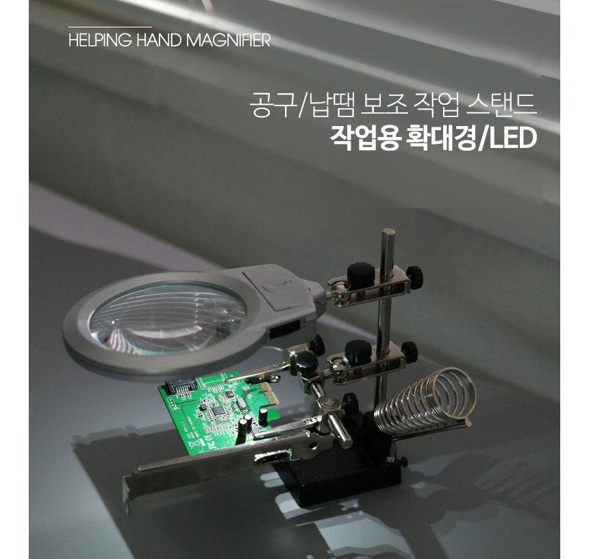- HOME > 안전(보안경)/카트/돋보기 > 돋보기/확대경 > 작업용 > LED조명 확대경 돋보기 작업 집게 인두 멀티 납땜 스탠드 받침대 작업대 거치대 2배율