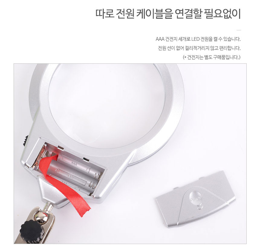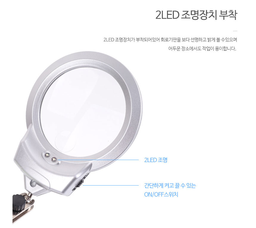2단계 배율 확대경 + LED 조명 , 집게/클립 2개 , 인두거치대