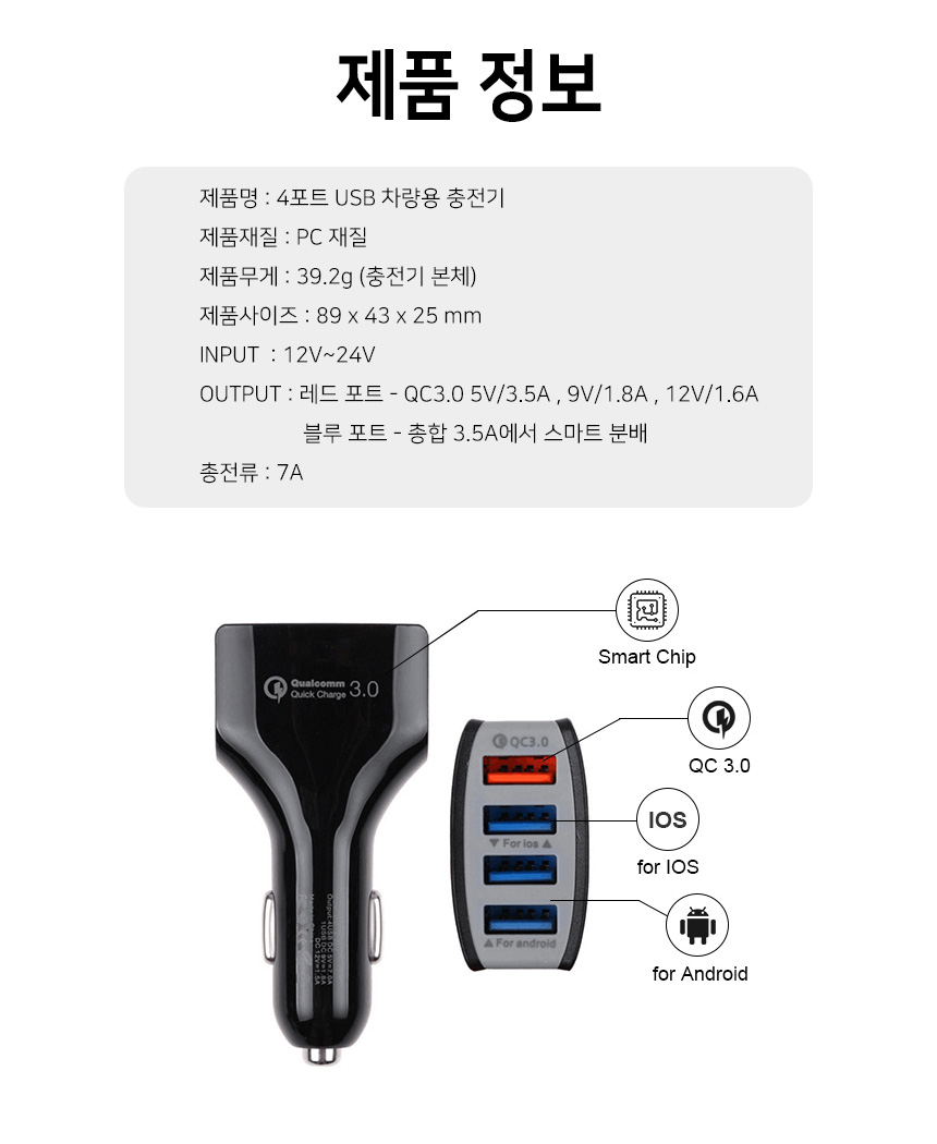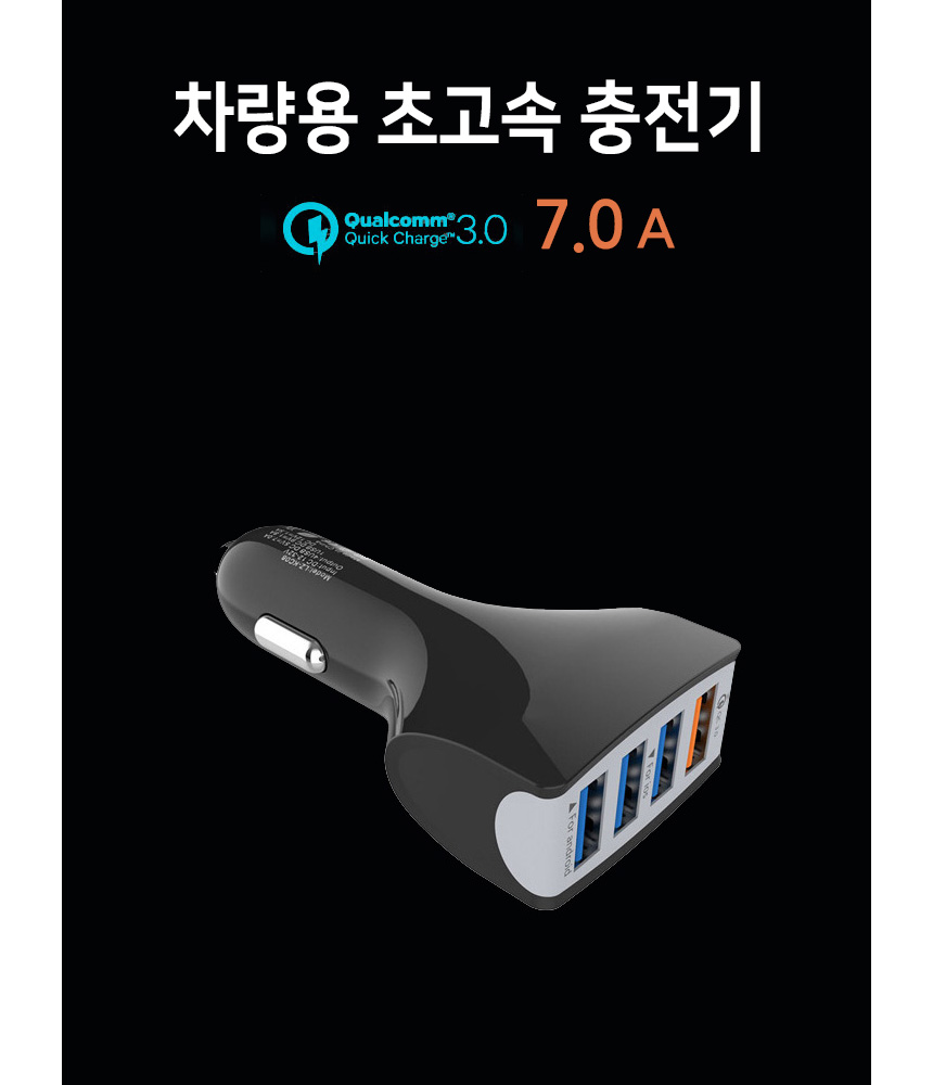 시가잭 고속 급속 멀티 USB 멀티포트 4포트 Qualcomm Quick charge 퀄컴 퀵차저 3.0 충전기 충전 차량용 휴대폰 스마트폰 USB 출력 5V 총합 7A QC 2.4A 3포트 3.5A 승용차 12V 화물차 24V 겸용 과열방지 보호회로 내장- 오호! OHOI