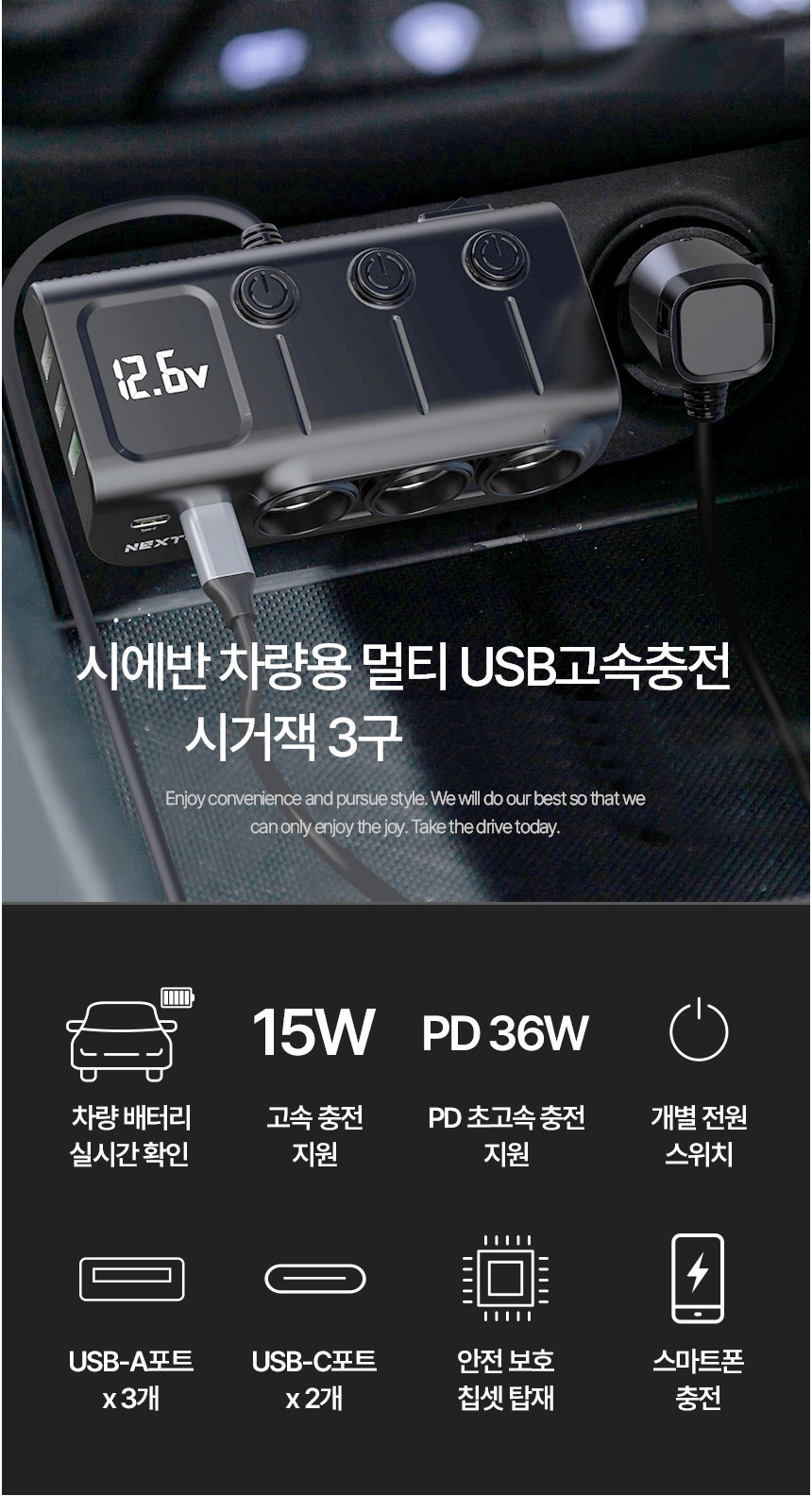 - HOME > 자동차용품 > 시가잭전원 > ▷시거잭멀티소켓 3구 > 시거잭 3구 USB 5포트 멀티소켓 차량용 분배기 온어프 스위치 전압계 12V 24V