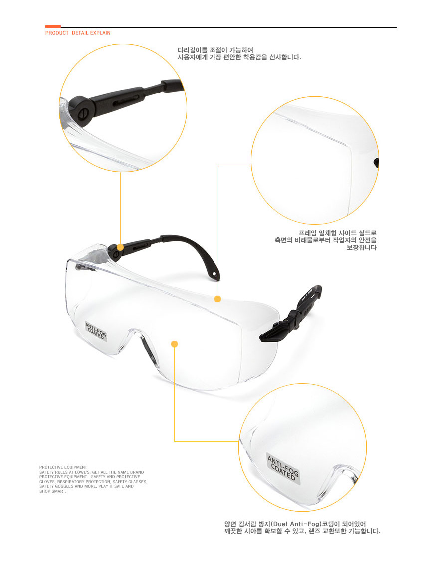 - HOME > 안전(보안경)/카트/돋보기 > 보안경/안전모/안전복 > 보안경 > OHOI 안전 고글 보안경 SP06 눈보호안경 김서림방지 작업 산업용 예초기 실험실 벌초