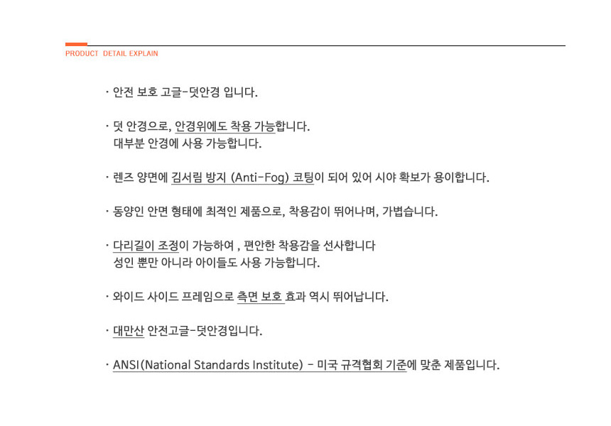 ANSI 미국규격협회 기준 , KS 기준 적합 제품