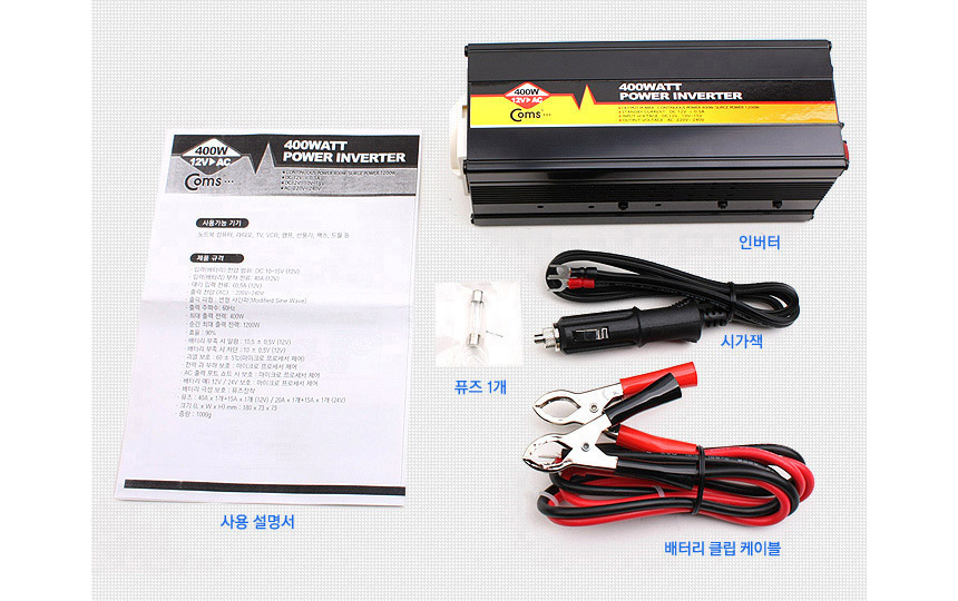 구성 - 인버터 , 케이블 2종 , 여분퓨즈 , 사용설명서
