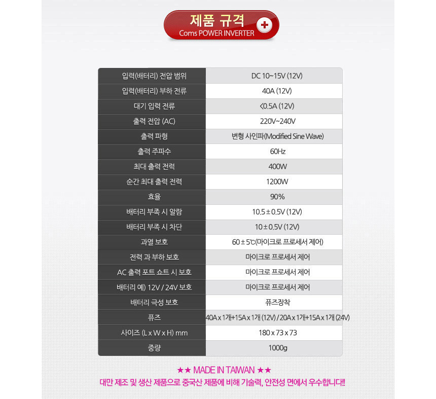 ※ 인버터 제품은 꼭!! 허용용량내에서 사용하셔야 합니다.